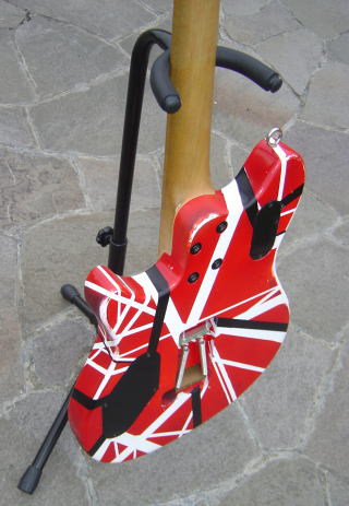 HVHさんの PEAVEY Wolfgang Special 元々はゴールド・カラーだったものを剥離材で塗装を剥がし、原寸の透明テンプレートで忠実にストライプを再現。 1998年の来日公演にて使用されたギターのレプリカである。