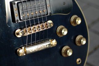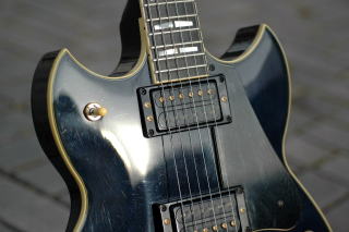は健在。ボディはメイプル+マホガニー、ネックはマホガニーで指板はストライプド・エボニー。コントロールは伝統のバイ