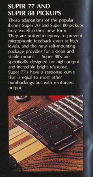 後期からオリジナルモデルが主流となって、 ピックアップもIbanez専用になっていくが、スペックはカタログ表記以外はあまり知られていない