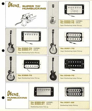 (カタログに見るIbanezのピックアップ:ハムバッキングのみ)