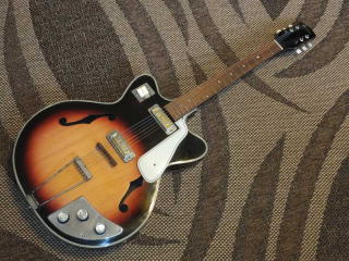 *写真は初期富士弦楽器に搭載された日伸音波ピックアップのギター 木曽鈴木バイオリンもある